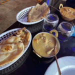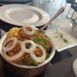 Thinly sliced onions mixed with chickpea flour, fresh herbs and spices, golden fried served with tamarind sauce